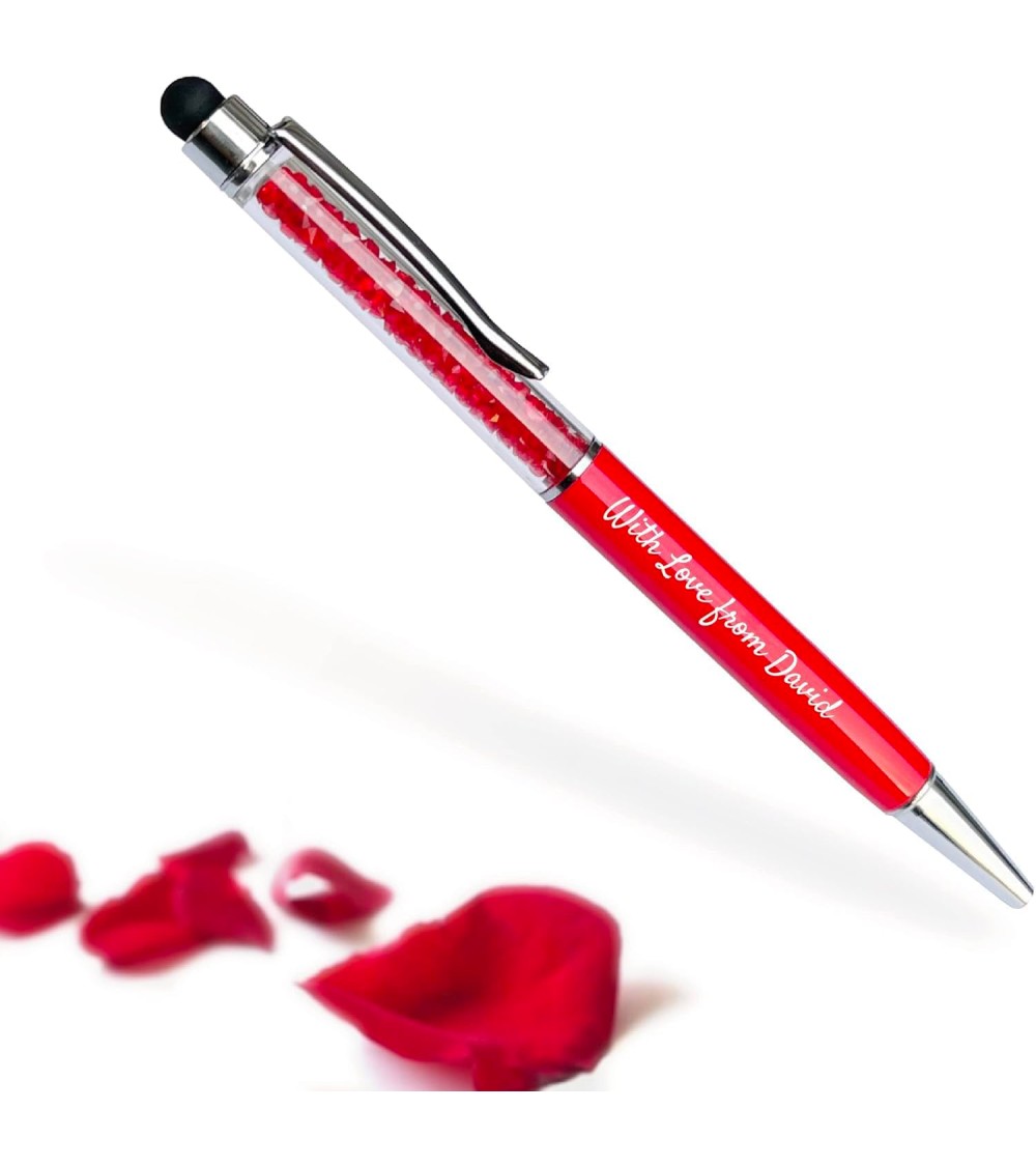 Un Stylo Personnalisé avec Cristaux Stylet avec votre texte - Coloris Rouge dans son étui assorti - Encre noire incluse.