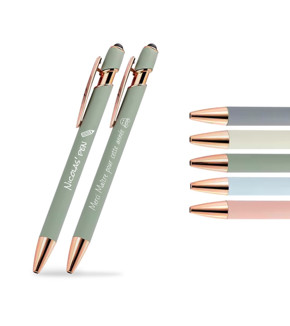 Lot de 2 stylos personnalisés aux couleurs pastel.