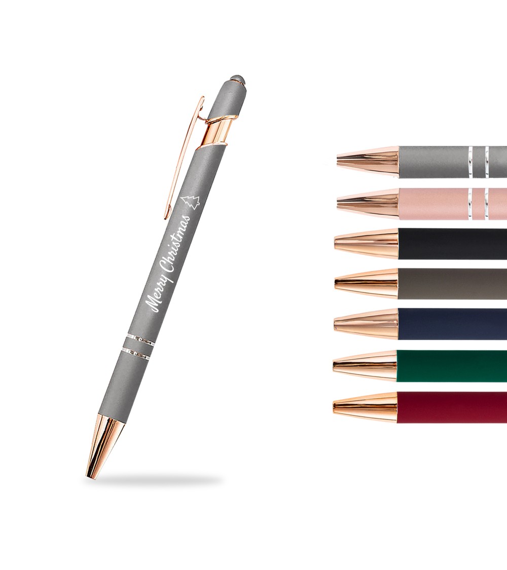 Le stylo personnalisé Rose Gold Soft Touch 2 en 1 séduit par sa finition délicatement lumineuse. Son détail métallisé rose gold apporte une touche chic et raffinée, tout en conservant la douceur caractéristique de la finition Soft Touch.